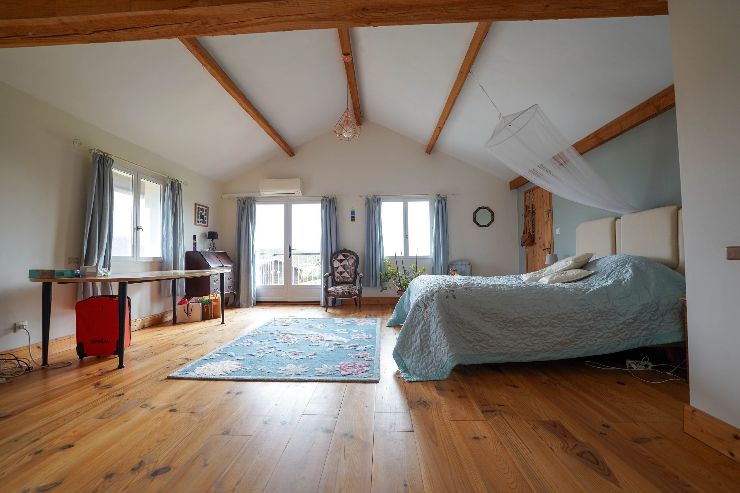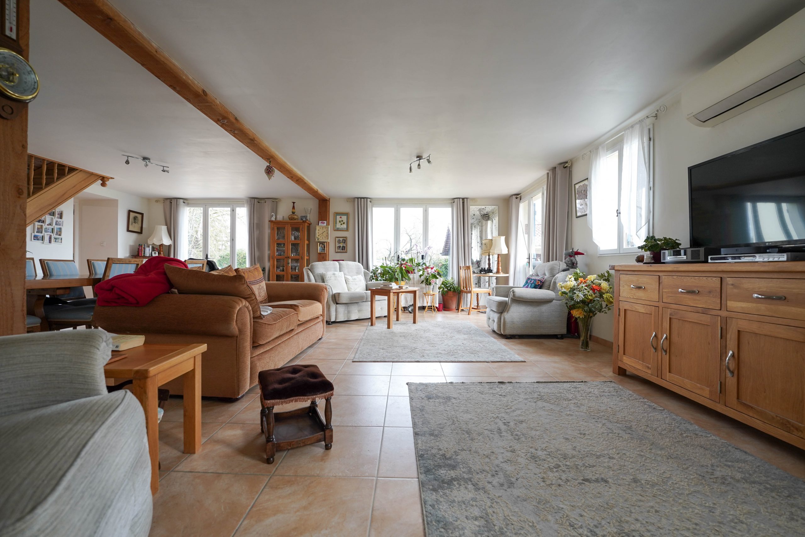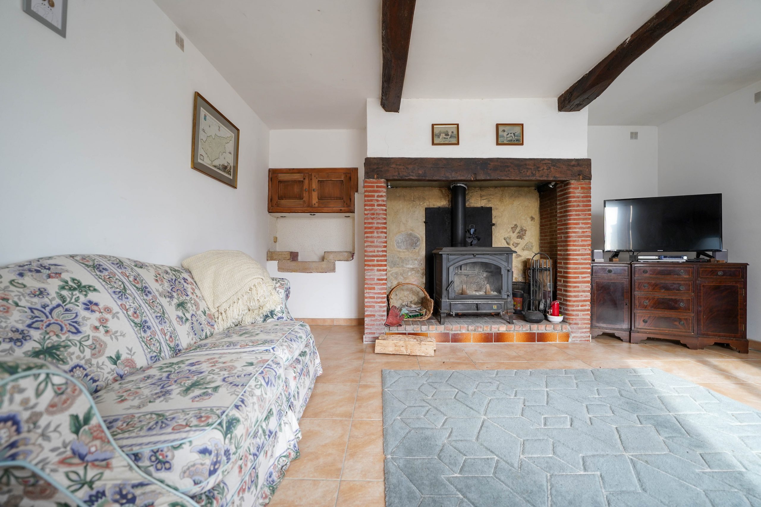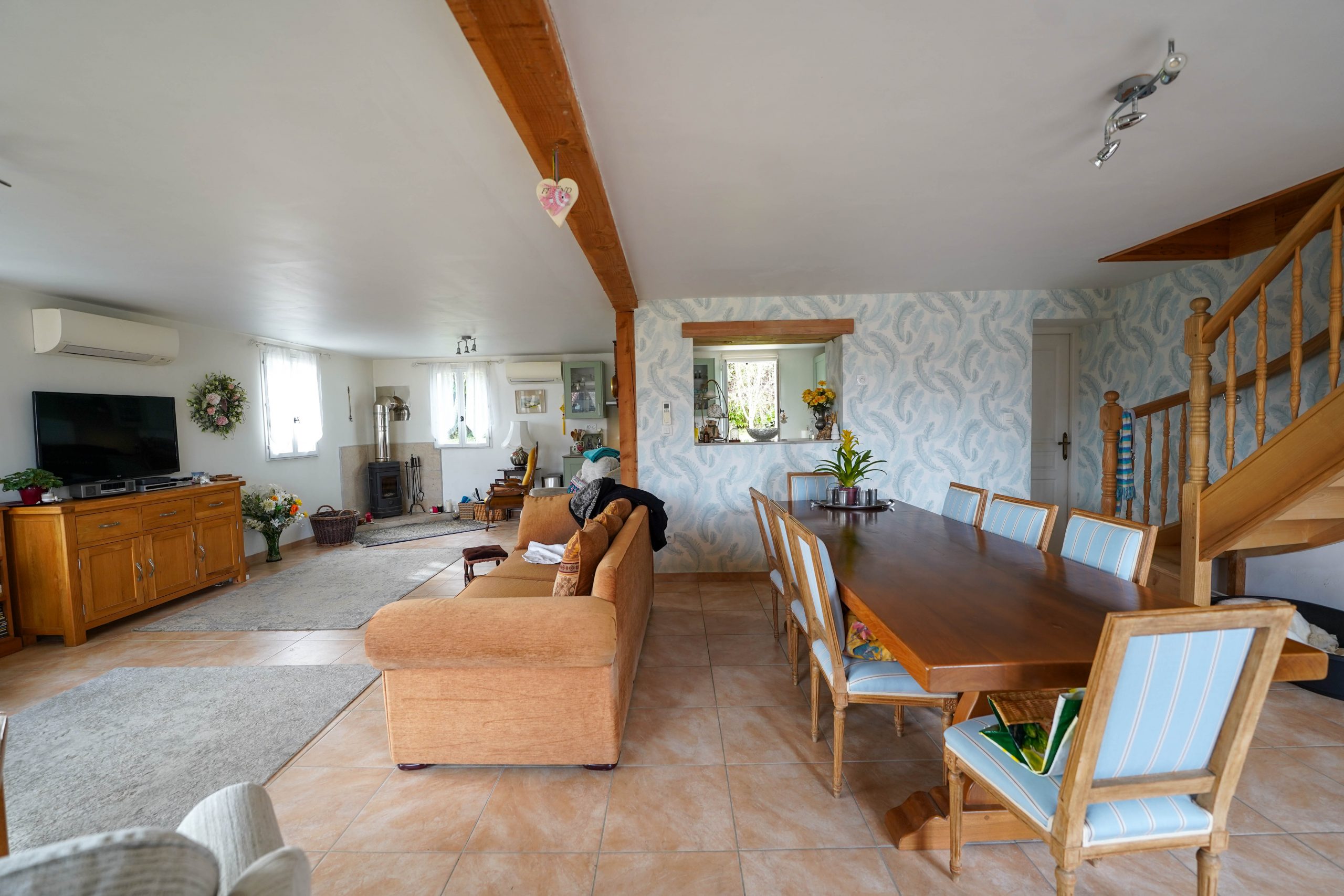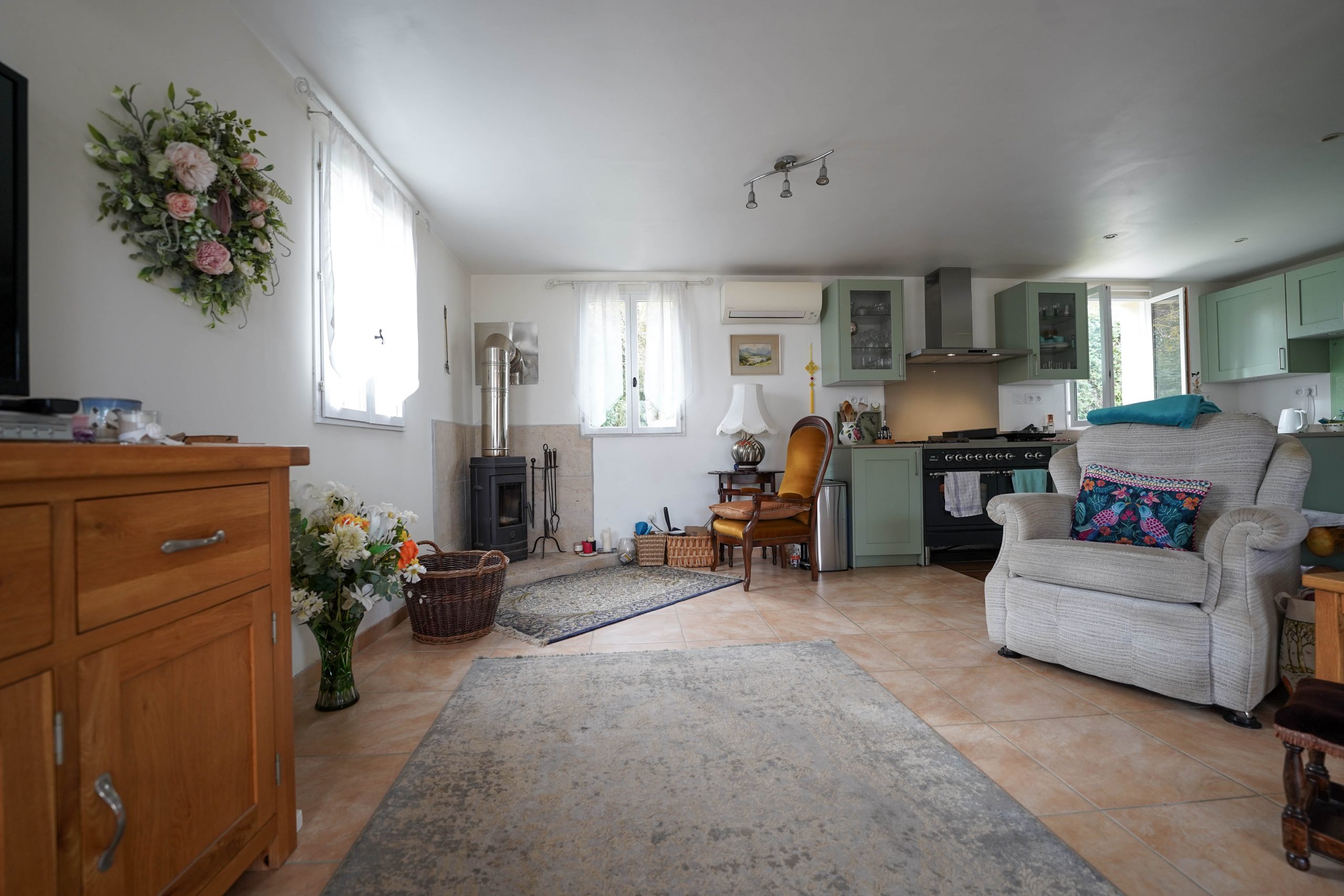 The house is heated by a reversible air system, which provides air conditioning in the summer. There is also a wood burner in the sitting room for those cosy winter evenings. The house is fully double glazed.
