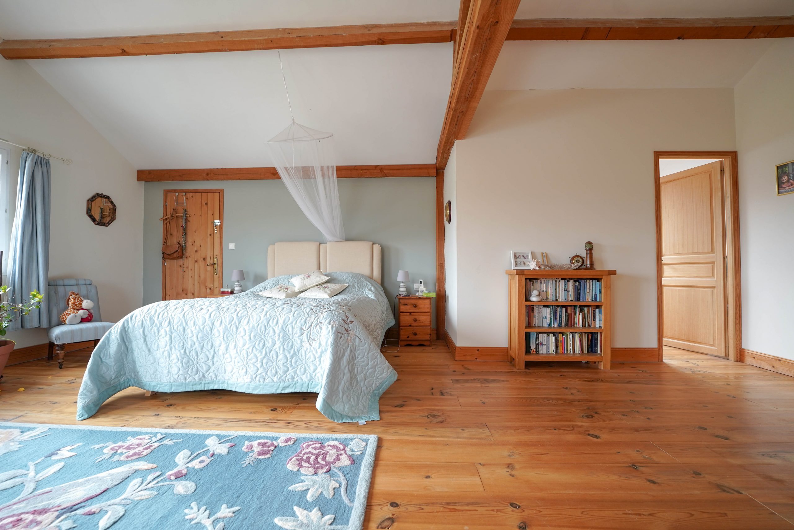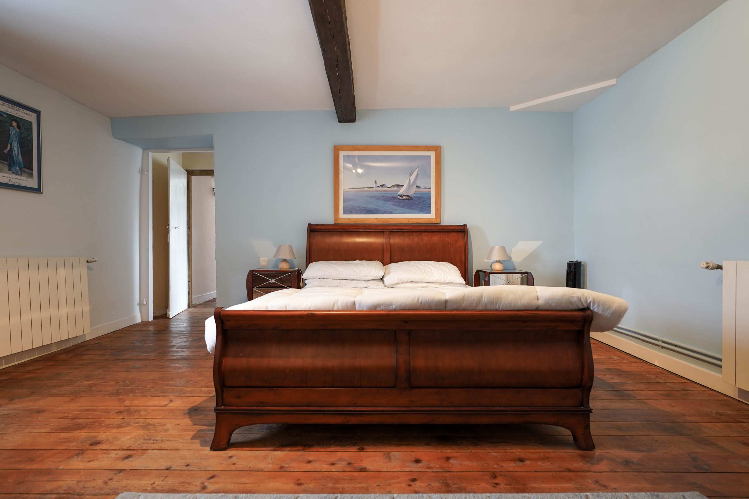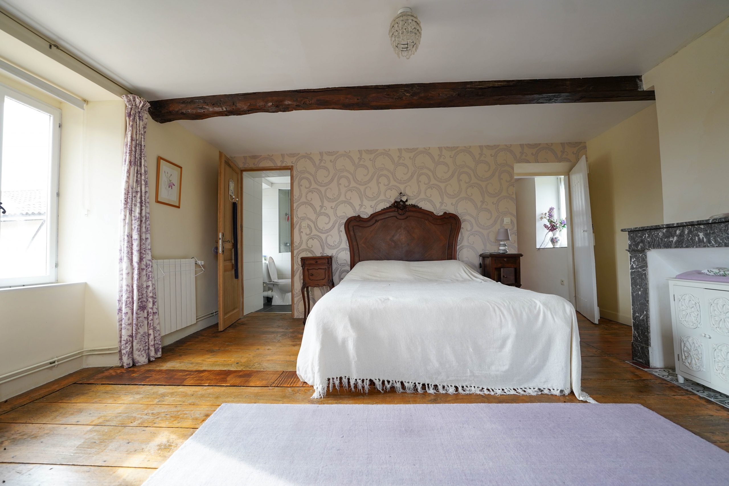 Upstairs there are two further bedrooms. The master suit has a separate dressing room and large ensuite shower room with walk in shower and double washbasins. French doors open onto a balcony with fabulous views of the Pyrenees mountain range. A perfect spot for your morning coffee and croissant!