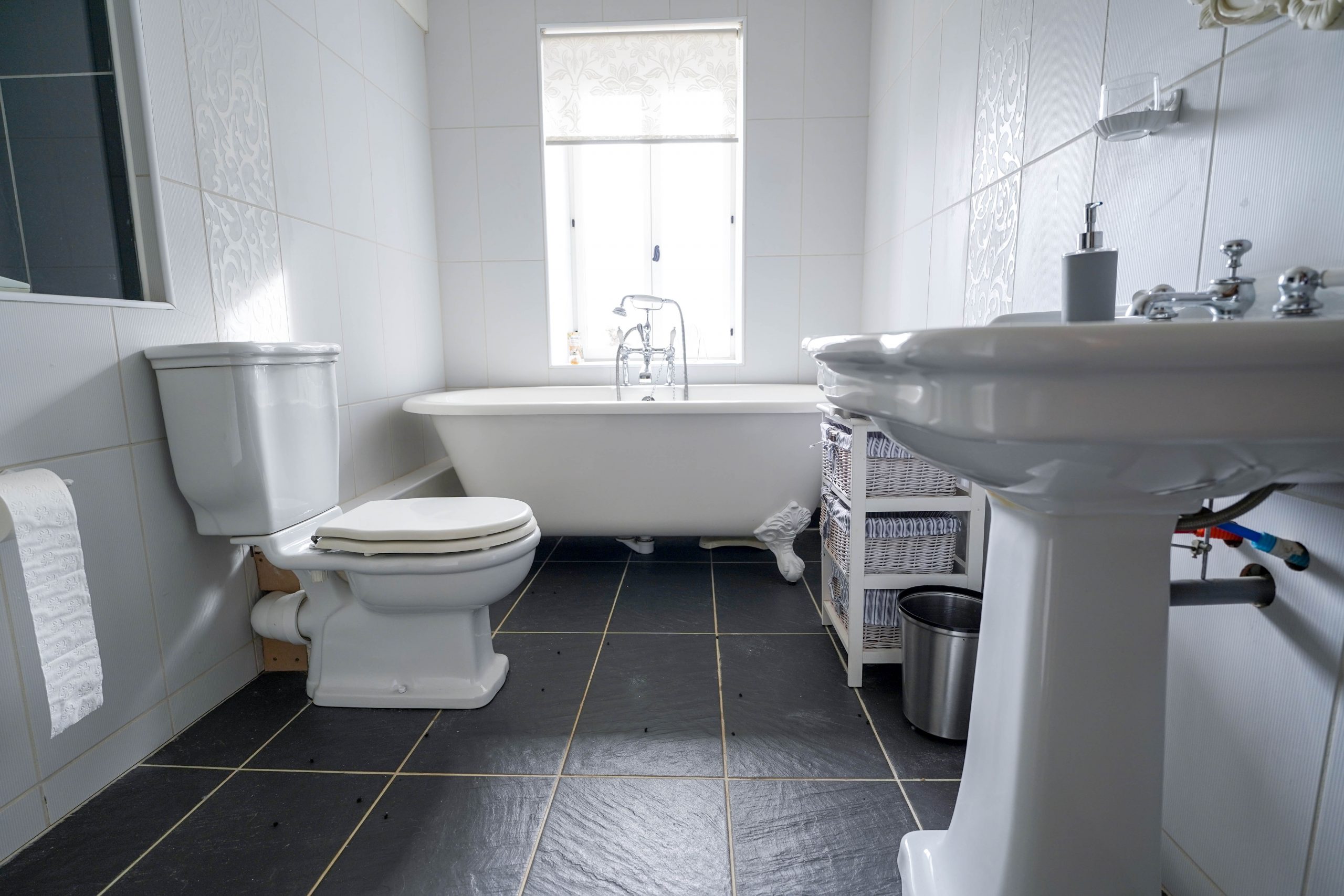 On the first floor are two spacious bedrooms, one with an original fireplace and en suite shower room. There is a family bathroom with large walk in shower and roll top claw foot bath situated under a window with fabulous views of the mountains.  A soak with a view!